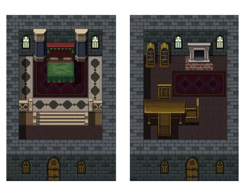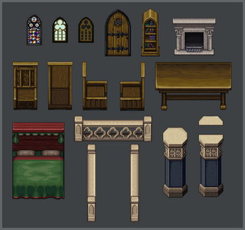 This interior tileset, inspired by authentic medieval Gothic architecture, features hand-textured walls and flooring along with ornate decor - perfectly suited for castle, cathedral, and manor interiors for RPGs.